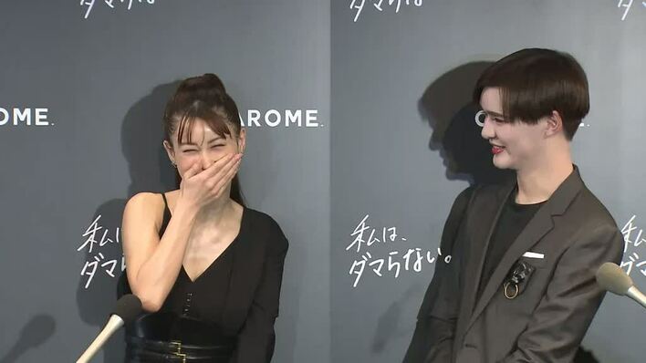 タレントのダレノガレ明美がCEOを務めるコスメブランド『CAROME.(カロミー)』のマスカラ新製品発表会が行われ、ダレノガレとブランドのPR大使を務めるMattが登場した。