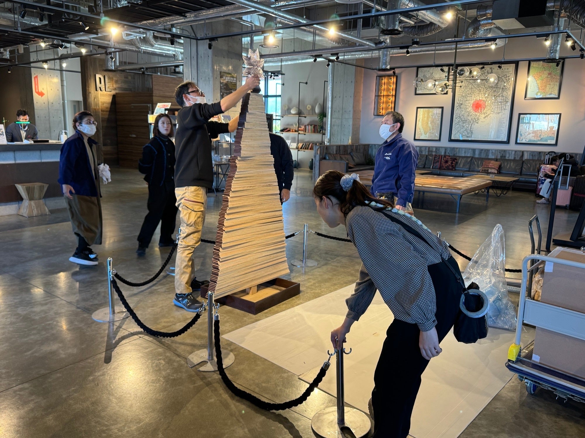 このツリーは、展示会やイベントなどで企画から運営までを担う株式会社昭栄美術に依頼し、設置しました。同社では「“もったいない”を価値に」という創業時からの想いのもと、2024年に社内プロジェクトでサステナブルクリスマスツリーを制作。今回はそのツリーを基に、館内のブルックリンテイストに合うようにナチュラル系の色味へと整え、当ホテルオリジナルのツリーとしてお楽しみいただけます。