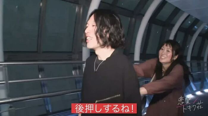 会話をしながらエレベーターで上層階へ上がり、さらに展望台を歩いてのぼる2人。れっぴーさんが和平さんの背中を押すなど、仲良く上がっていきます。