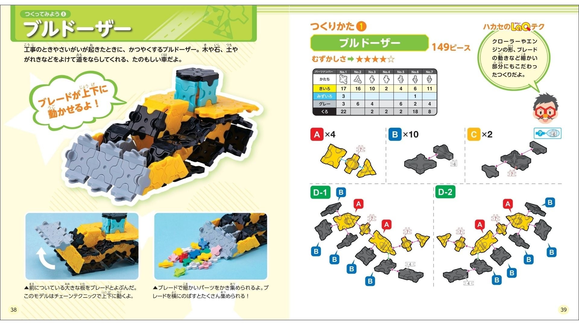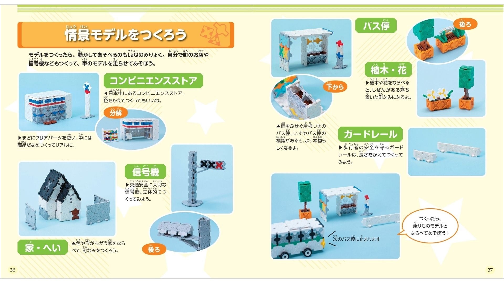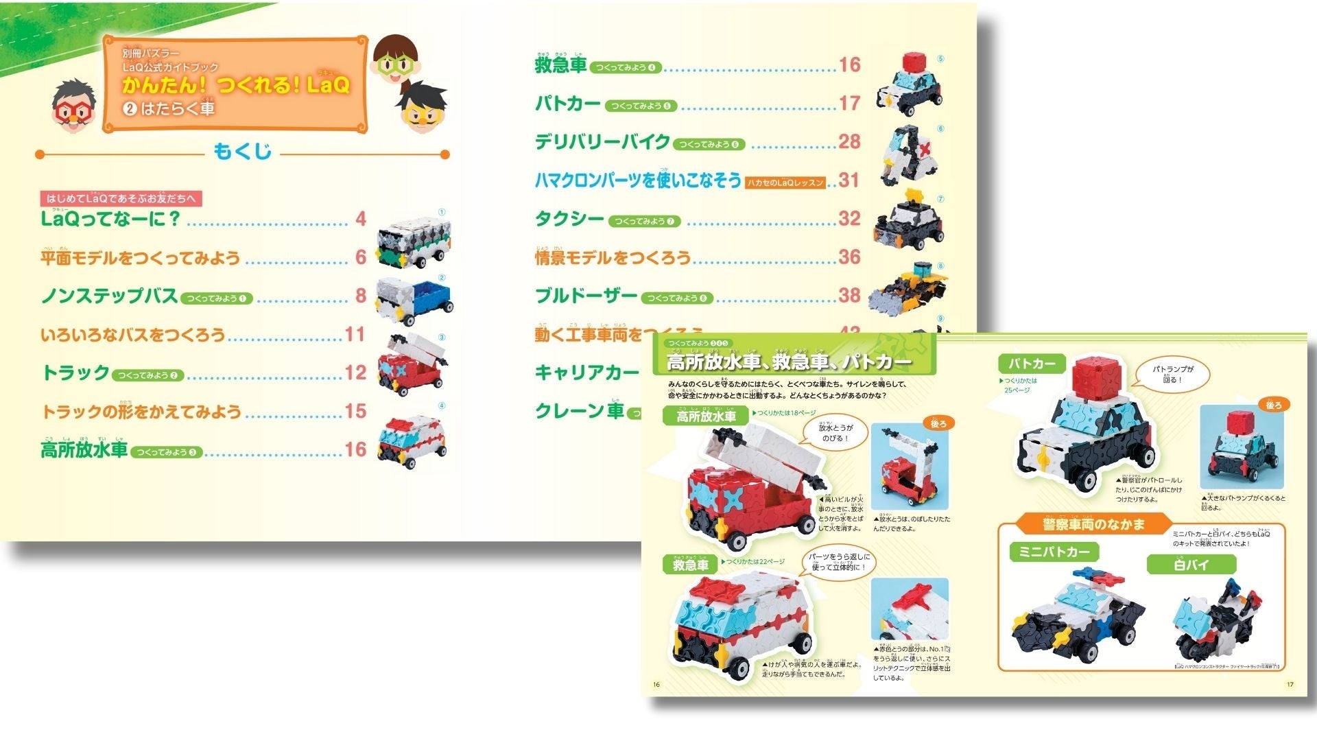 LaQは、保育園や幼稚園、放課後児童クラブなどの教育現場でも広く使われています。本書には、ブロック遊びが大好きなお子さまはもちろん、はじめてLaQにふれるお子さまでも作りやすい、ていねいな組み立て図を多数収録。ご家庭での遊びにも最適で、楽しみながら創造力や集中力を育むことができる一冊です。
