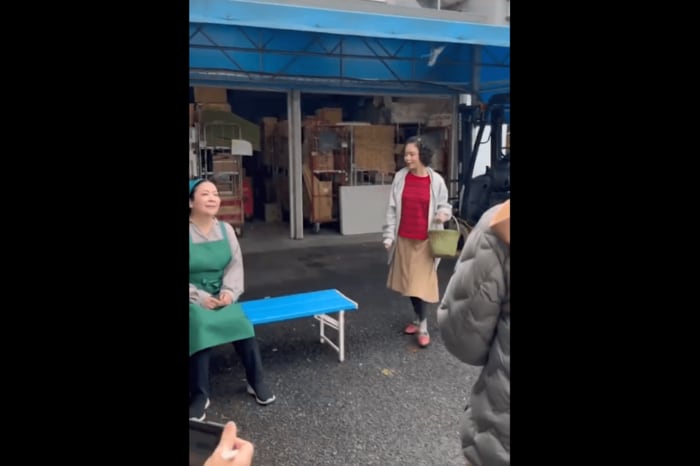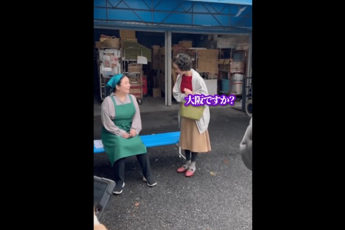そして、スーパーの店員に「大阪ですか?」と話しかけ、店員が「千里中央(大阪の地名)です」と答えると「千中!」と返して大笑い。店員の隣に座り込み、何やら情報を聞き出す様子がとらえられています。