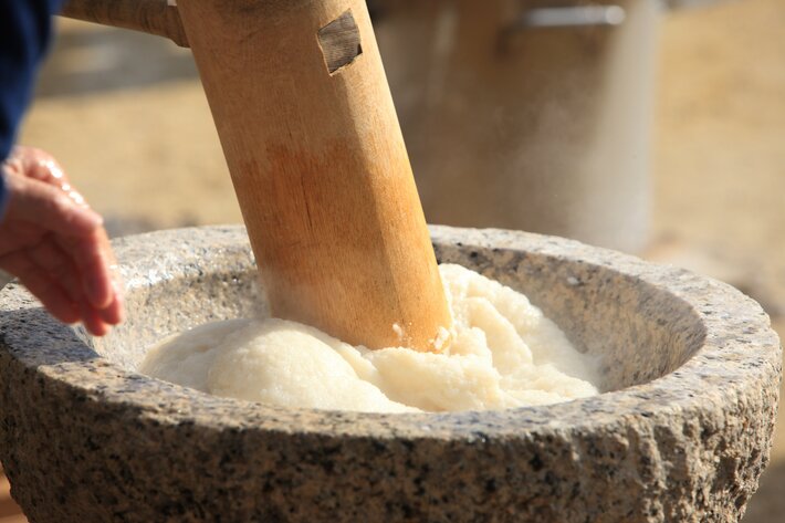 臼と杵を使った本格的な餅つきを、ホテルスタッフがサポートしながら体験いただけます。賑わいを感じられる、家族旅行にも人気のイベントです。(ご宿泊のお客様はどなたでも気軽にご参加いただけます。)
