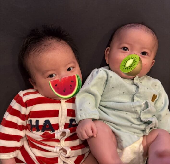 今回の投稿で「二ヶ月すぎると双子、表情バリエーションが多彩化してきますね!」とつづり、双子の近況写真を公開した中川さん。仲良く一緒にソファに座り、各々どこかを見つめています。