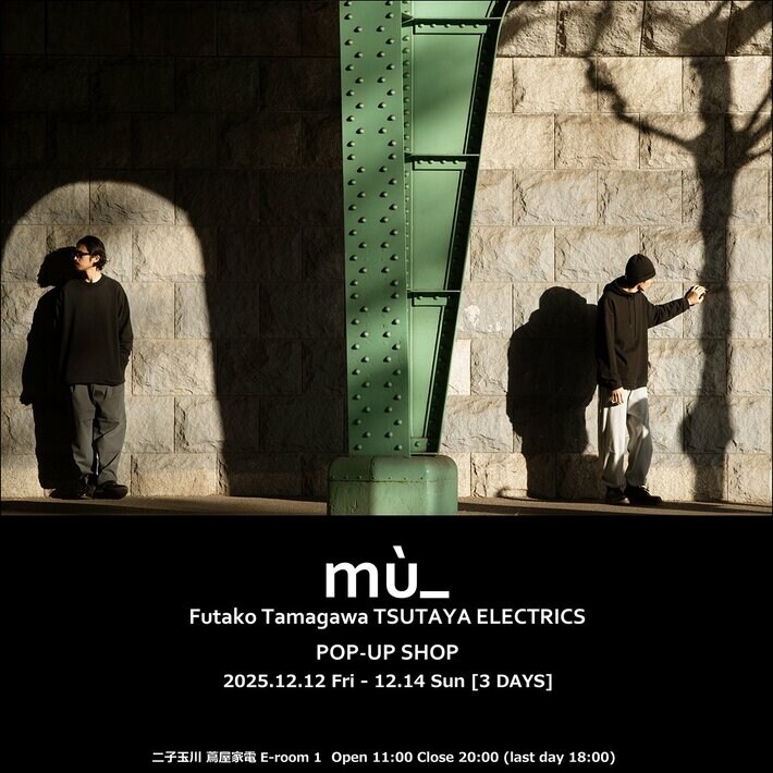 メンズファッションブランド「mù_(ムー)」は、2025年12月12日(金)から14日(日)までの3日間、二子玉川 蔦屋家電 E-room1にてPOP-UP SHOPを開催いたします。