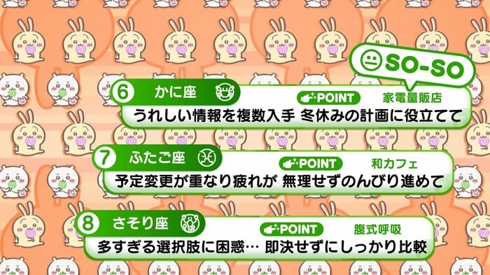 『めざましテレビ』で放送中の「ちいかわ占い」 テレビ放送がない日はお休みで、月~土:朝7時以降に更新予定です。