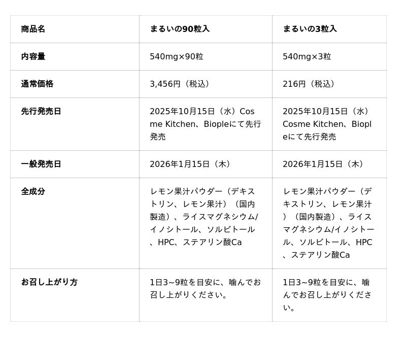 「まるっと心地よい毎日のリズム。」今、注目されている成分の一つ「イノシトール」をキー成分としています。イノシトールはビタミンB様物質で、世界中で古くからサプリメントや機能性食品に使用されている素材です。築野食品工業株式会社が製造している「国産の米ぬか由来イノシトール」を1粒に250mg配合。忙しい毎日のお供として「イノシトールを気軽に生活に取り入れてほしい」という思いで、ほんのりレモン味のチュアブルに仕上げました。イノシトールのほんのりとした甘さを生かした「おいしく、噛んで食べる」インナーケア商品です。