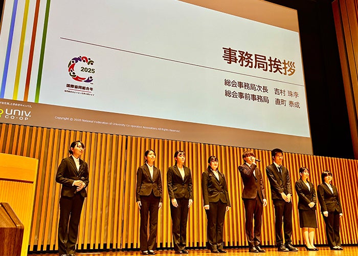また、2025年度は国連において**第2回国際協同組合年(IYC2025)**に位置付けられ、多くの協同組合で関連する取り組みが実施されました。これらの成果も踏まえ、大学生協の中期ビジョン「2030Goals」の達成目標年まであと5年となる2026年度の活動方針を、本総会にて審議・決定する予定です。■【学生が運営参加】:学生たちが数百人規模の会議を取り仕切る圧巻の様子
