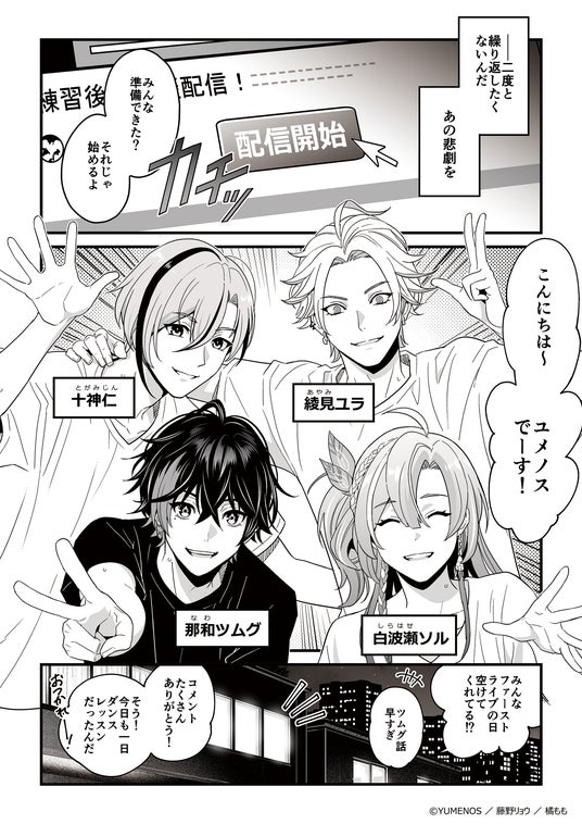夢を叶えるためタイムリープを繰り返すメンズアイドルの話YUMENOSのメンバーが「境転生(=世界線を超えてタイムリープ)」し、この実世界に生まれVTuber活動をはじめるまでの “もうひとつのストーリー” を描いたオリジナルマンガを無料連載中です。