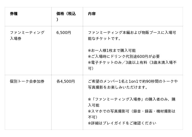 また、ファンミーティング入場券の先行抽選受付を開始いたしました。