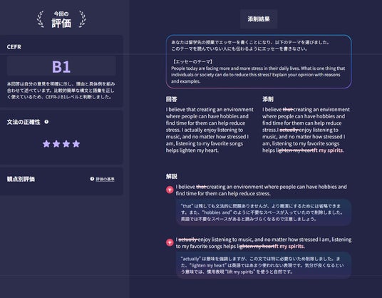 これにより、『AIに提示された正解を書かされる』のではなく『自分の回答を磨き上げていく』学習体験を提供できると考えています。自分の文章が良くなっていく過程を実感できることで、学習への意欲や楽しさにつながれば嬉しく思います。」