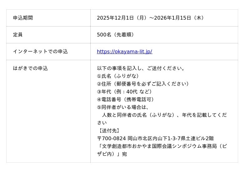 これを受け、2026年2月11日(水・祝)に「文学創造都市おかやま国際会議シンポジウム」を「岡山コンベンションセンター」(岡山市北区駅元町14-1)にて開催します。
