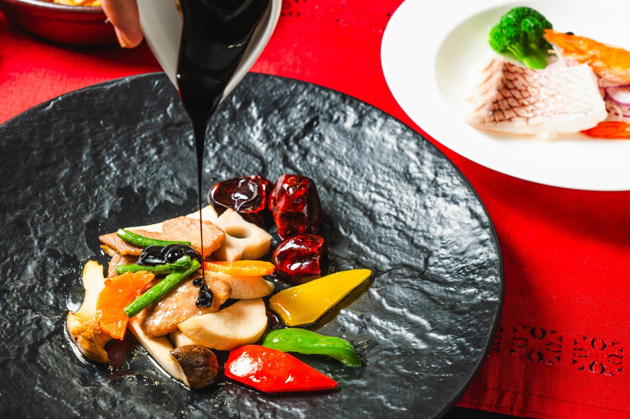 香ばしく炒め上げた生ロブスターは、弾む食感と凝縮した旨味が広がる華やかな一皿。そこへ和牛を唐辛子の香りと辛味で引き立てた一品が続き、素材が持つ魅力をシンプルかつ贅沢に味わえる、コースでも印象深い組み合わせです。