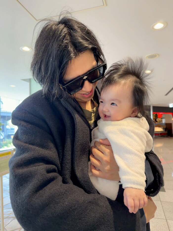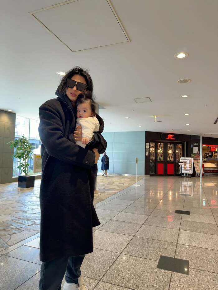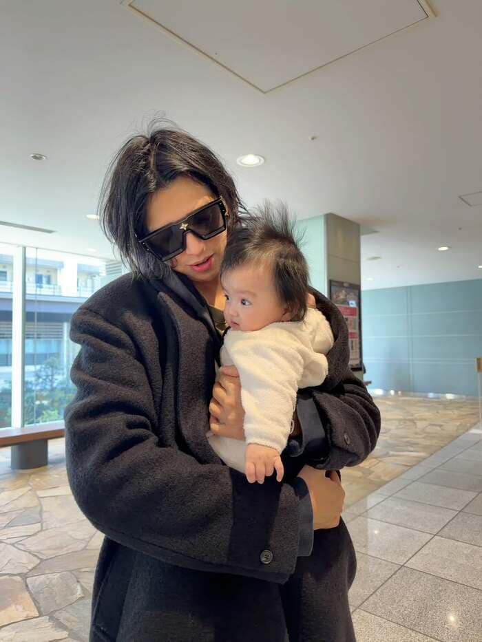 そして、アレクサンダーさんは今回「ダディーは子供達のボディーガードです。」とつづり、ググガガちゃんを抱いたショットを公開。黒いロングコート姿で大きなサングラスをかけたアレクサンダーさんは、愛おしそうにググガガちゃんを抱きしめています。アレクサンダーの胸にすっぽりおさまったググガガちゃんは、目を大きく開け、周囲を見つめているよう。