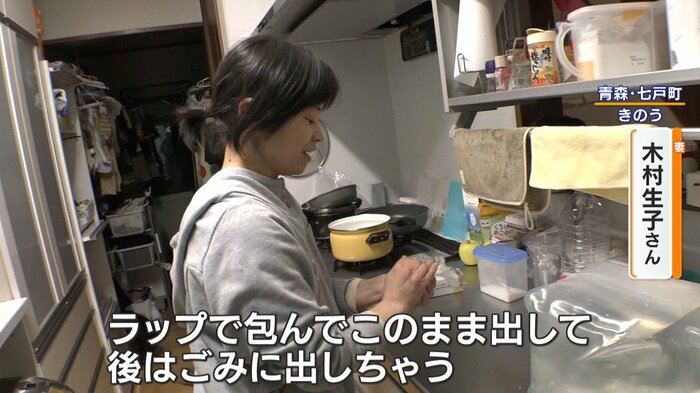 八戸市内に住む女性の家を見せてもらうと、玄関に置いていた水槽は割れ、台所では割れた食器類などの片付けに追われていました。