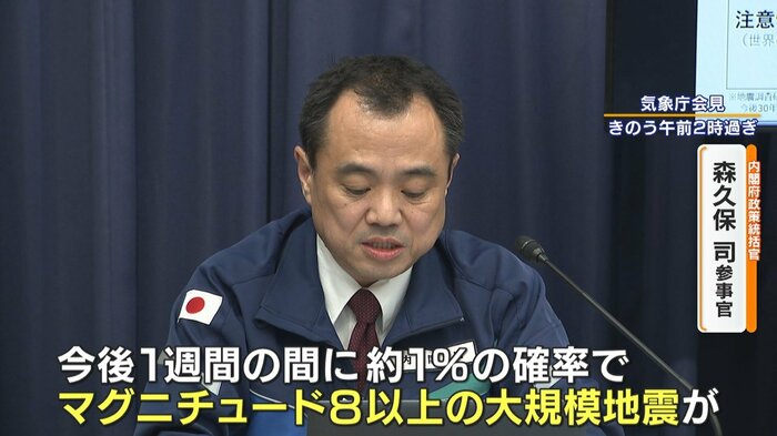 政府は、今後1週間程度、地震や津波に備え すぐに逃げられる態勢などの防災対応をするよう求めています。