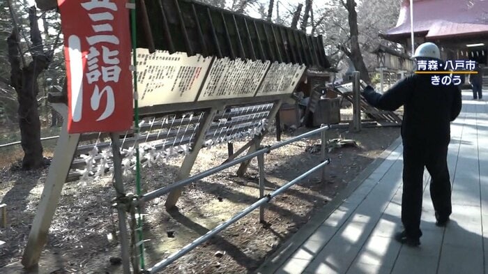 市内にある八坂神社は入り口の鳥居が歩道に倒れ、江戸時代に創建された長者山新羅神社でも、灯籠が倒れ、社殿の戸やガラスが割れるなどの被害に見舞われました。