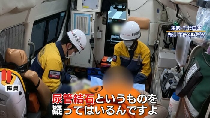 痛みの状況や男性の状態などから隊員が推測したのは、「尿管結石」。