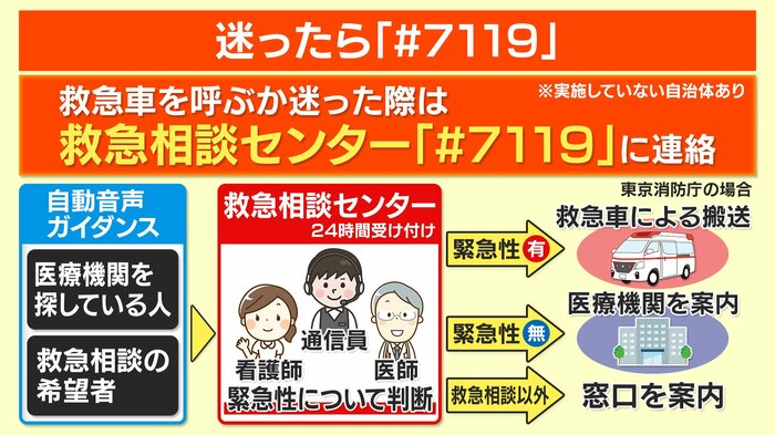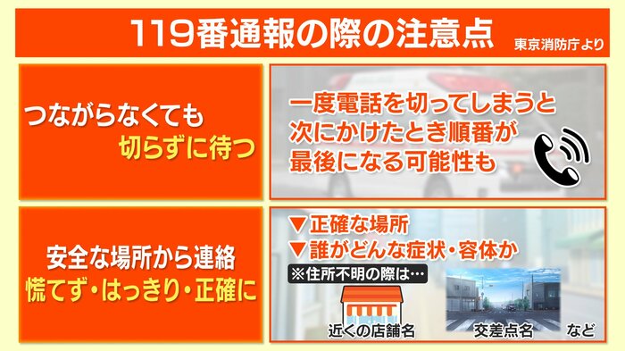 (通報者の)お話をよく聞いて、緊急性があるのかどうかというのは判断して、場合によっては「こちらは緊急の通報を受ける場所なので」ってことで(通話を)切断することもあります。迷って症状が悪化するのが一番怖いので、迷ったら119番していただければと思います。