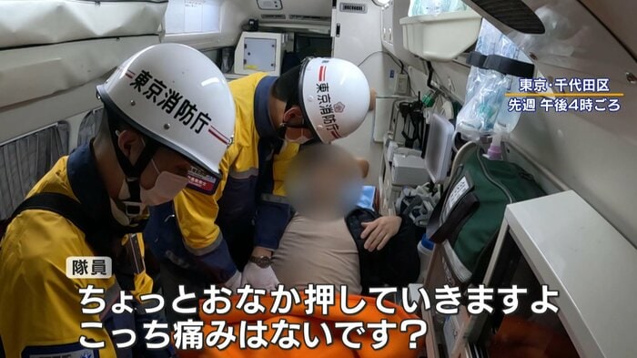 隊員「ちょっとおなか押していきますよ。こっち痛みはないです?」