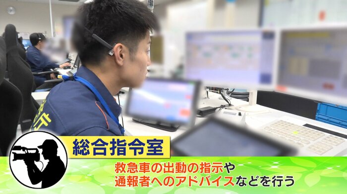 指令管制員が救急車の出動の指示や、通報者へのアドバイスを行います。