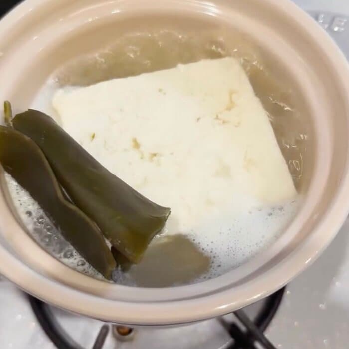 さらに、土鍋では利尻昆布と一緒にグツグツと煮立たせているのは大きな豆腐を丸々使った湯豆腐!体の芯から温まる寒い冬に思わず食べたくなる一品ですね。