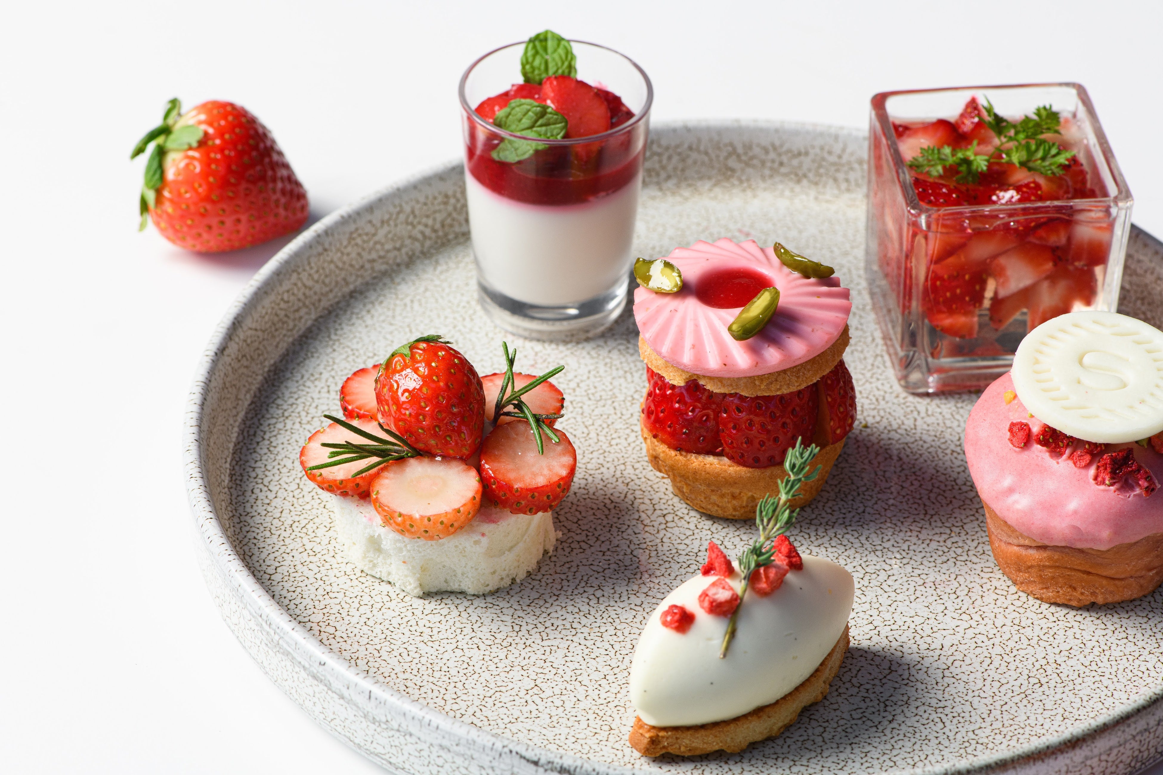 今年の『苺のアフタヌーンティー』は、赤と白を基調にした華やかなスイーツをご用意。旬の苺を使ったスイーツ、フランス料理のコンクールで日本一に選ばれたシェフが手掛けるセイボリー、プレミアムな一粒を堪能できる食べ比べ苺、人気の焼き立てスコーン、そして期間限定のフレーバーティーなどのドリンクが揃う贅沢なセットメニューです。
