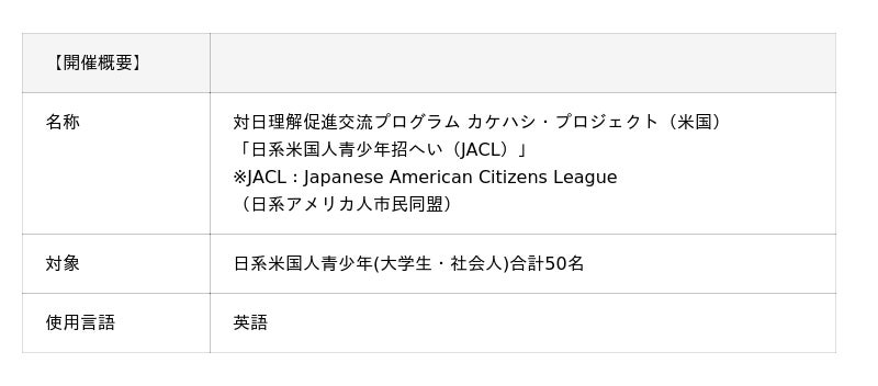 【対日理解促進交流プログラム「カケハシ・プロジェクト」事業概要】