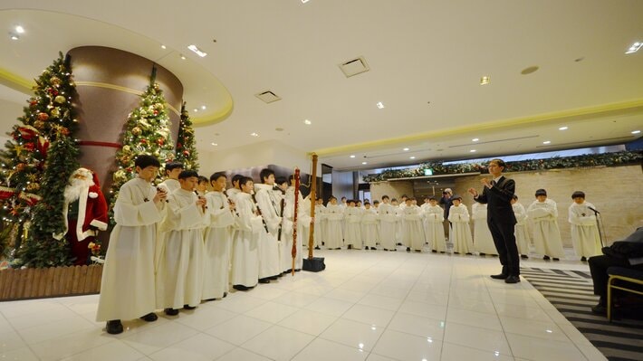 暁星小学校聖歌隊の透明感ある歌声、澄んだメロディをロビーフロアに放ち、聴き手の記憶の中で永遠に生き続けるコーラスを演出します。当日募った義援金は全額、様々な人道的活動をする「日本赤十字社」に寄付をいたします。