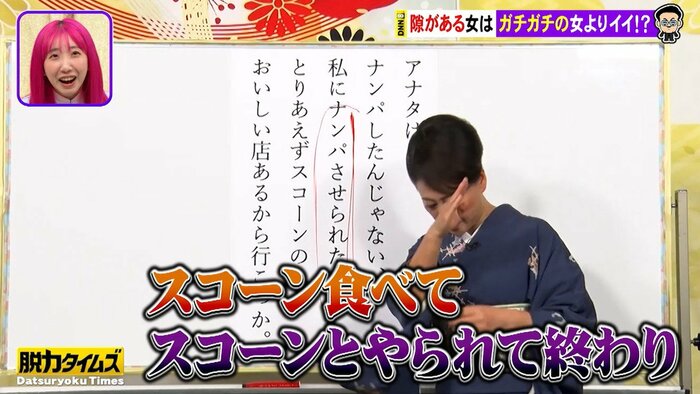 あんりさんも「勘違いしてるよ!」とツッコむも、友近先生は「隙がある女は、ガチガチな女より◯(マル)」と、意外な視点を示しました。それでも――。