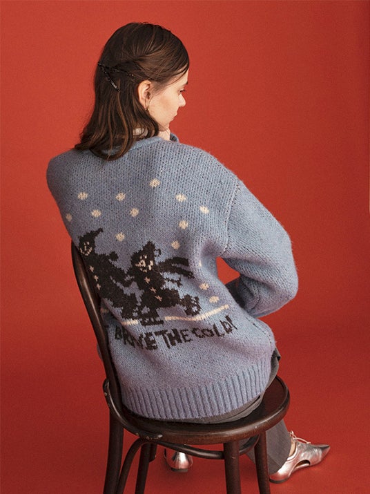 『Happy Winter』をテーマにオリジナルで描き下ろしていただいたイラストを、ダブルジャガードのニットで再現。