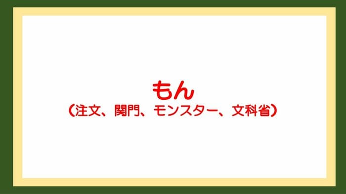 正解は「もん(注文、関門、モンスター、文科省)」。