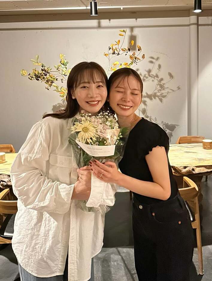 11月に歌舞伎俳優の中村橋之助さん(29)との婚約を発表した能條さんとは高校時代の同級生という朝日さんは、能條さんとの2ショット写真を投稿。「愛未ーー!結婚おめでとう」と、親友の婚約を祝福。花束を手にして能條さんと顔を寄せる姿を披露しました。