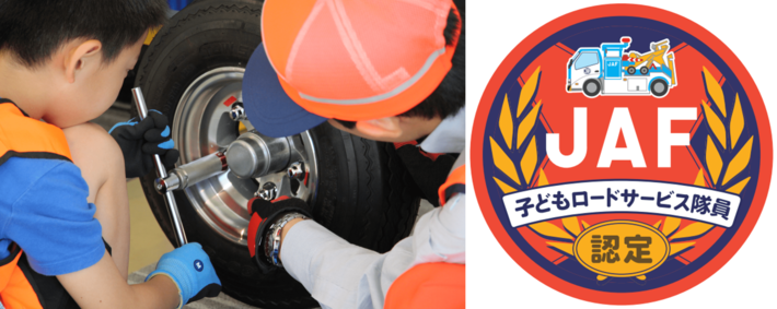 子ども安全免許証発行、バッテリー上がり作業体験、タイヤ交換体験、レッカー車展示・操作体験、災害支援車展示