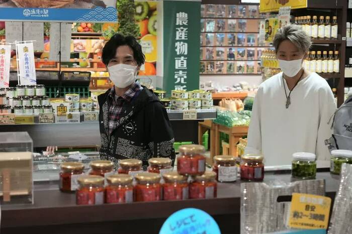 スーパーでは二階堂さんが、冷たい水に手を入れて思わず「熱っ!」と言うなど、天然ぶりを炸裂。お互いにツッコミを入れながら食材とお酒を買い出し、お次は道の駅へ。