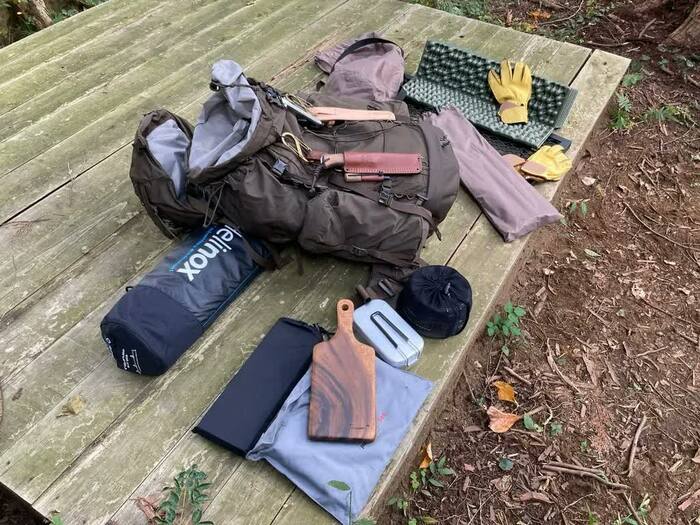 二階堂さんは、小山さんのサイトから川をはさんだ対岸にギアを設置。そのコンパクトな設営場に「見た感じ、俺のギアは全部入らないね」と言う小山さんに、「それぞれのスタイルがあるから」「イキって仕切り始めようとしてるけど…」と二階堂さんが釘を差し、それそれの持ち場に分かれてギアの設営が始まりました。