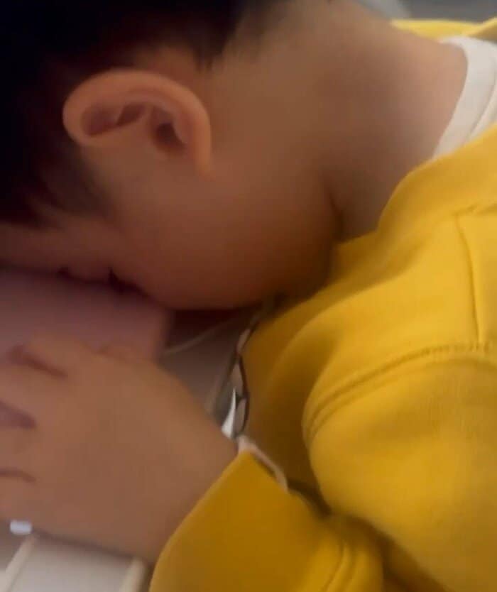 近くにママが来るとさすがに顔を上げてしまいそうになりますが、長男はまだ隠れているつもり...!