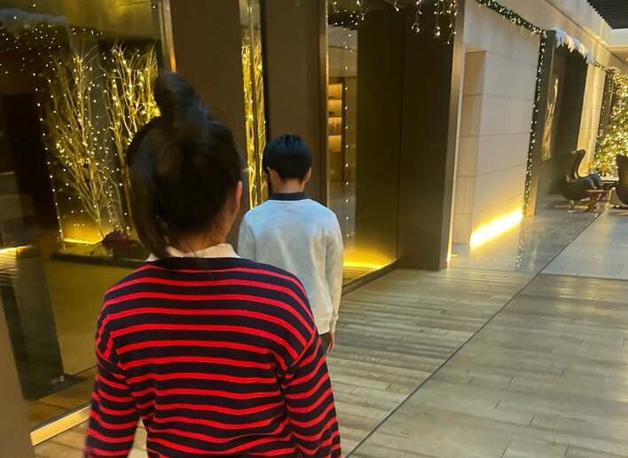 「晩御飯へ、」とつづった投稿では、イルミーネションが施された建物内を歩く麗禾さんと新之助さんの後ろ姿が。麗禾さんは、赤のボーダー柄のシャツで、かわいらしいお団子ヘアに。一方の新之助さんは、白のトレーナー姿です。