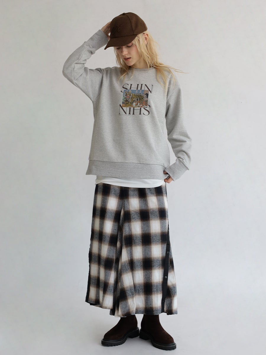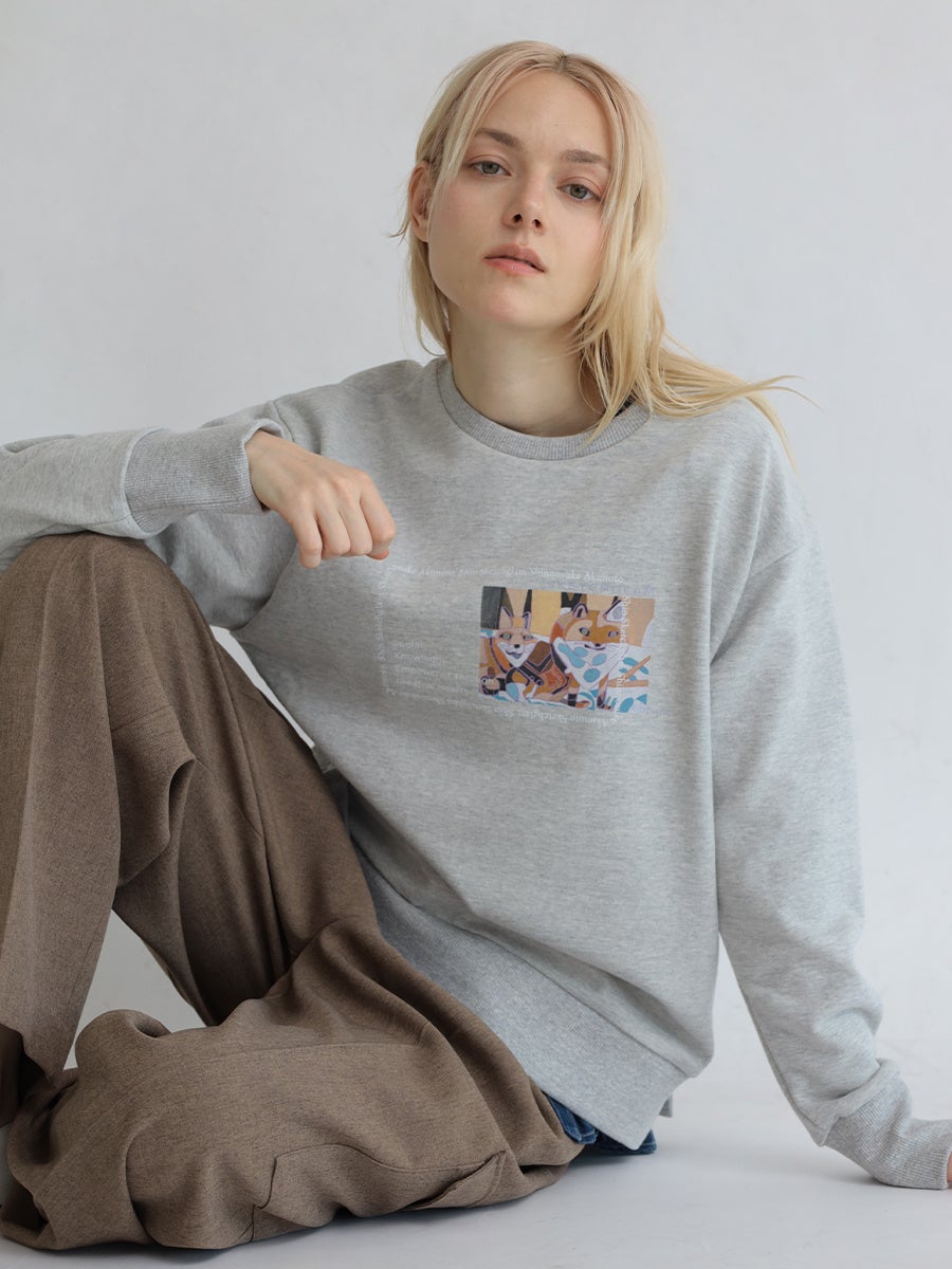 Shinさんのアート作品をプリントしたスウェットプルオーバー。程良くルーズなシルエットでどんなボトムスとも好相性◎ 性別・年齢問わず、メンズ・レディース共に着回しやすい一着です。
