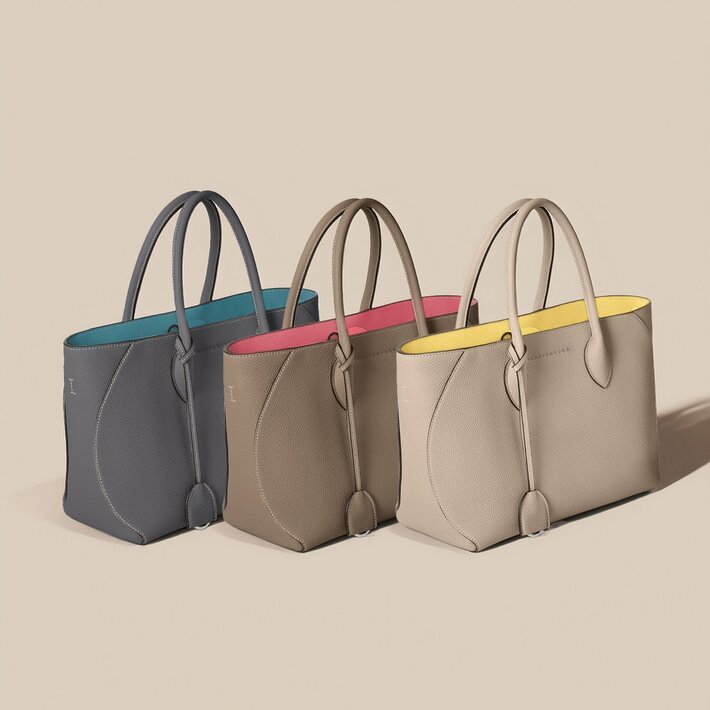 ベースカラー4色から、インサイドカラーは8色からお好みのカラーを選んでいただき、自分だけのミア トートバッグをオーダーいただけます。