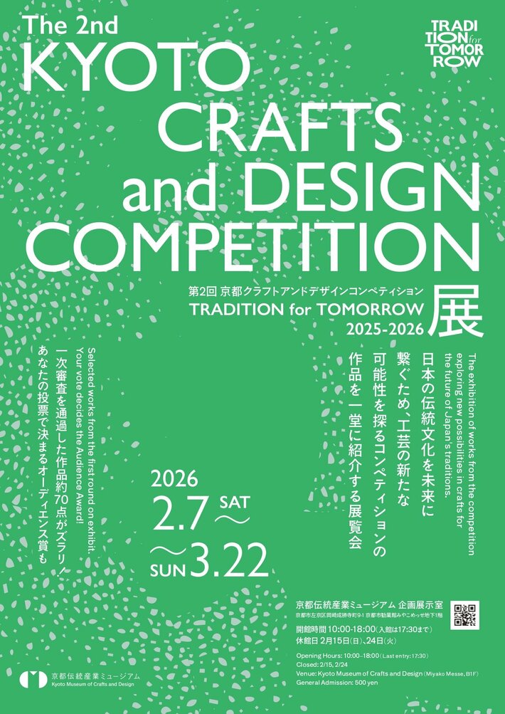 京都伝統産業ミュージアム(京都市左京区)では、2026年2月7日(土)から3月22日(日)まで、第2回 京都クラフトアンドデザインコンペティション「TRADITION for TOMORROW」展を開催します。本展は、京都の伝統産業が育んできたものづくりを未来へつなぐことを目的としたコンペティションの入選作品を紹介する展覧会です。