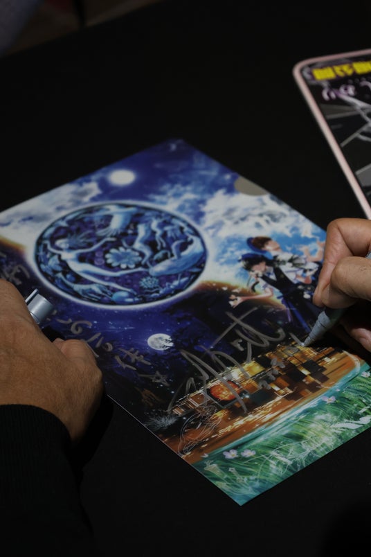 サイン会も、両日とも受付開始と同時に行列が途切れず、即満席となりました。「いのちめぐる冒険」での体験、感動を直接伝えるお客様の声に、河森正治が一人ひとり丁寧に応えながら、サインとメッセージを一人一人に書いていきました。