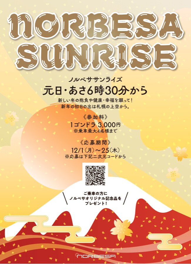 2026年元日、ノルベサはあさ6:30より屋上観覧車ノリアの運行を開始し、札幌の上空で新年を迎える初日の出イベント「ノルベササンライズ」を開催。2026年の幕開けは屋上観覧車nORIA(ノリア)で迎えませんか?札幌の上空80mから初日の出を拝むノルベサでしか体験できないイベントです。