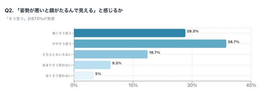 「姿勢が悪いと顔がたるんで見える」と67%が実感 ―姿勢ケアと美容ケアの新たな相関関係が明らかに―