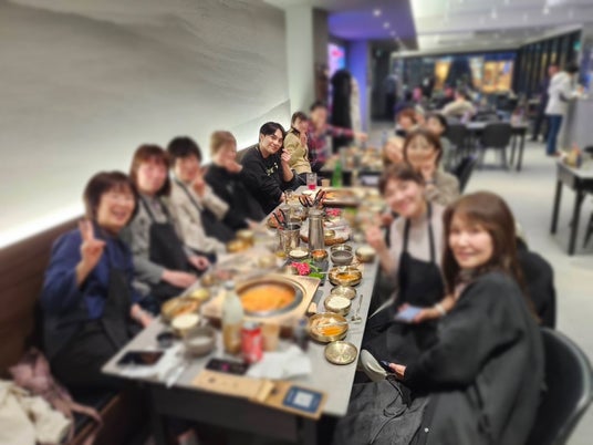 黄金色の並木道が続くカロスキルでショッピングを楽しんだ後は、瑞草(ソチョ)ロッテマートでお菓子や海苔などのお土産を爆買い!オープンテラスで秋風を感じながら過ごす自由時間から、カートいっぱいに詰め込む賑やかな買い物まで、旅の締めくくりにふさわしい盛り上がりとなりました。■最後は、スンジュン先生と共に旅の振り返りパーティー
