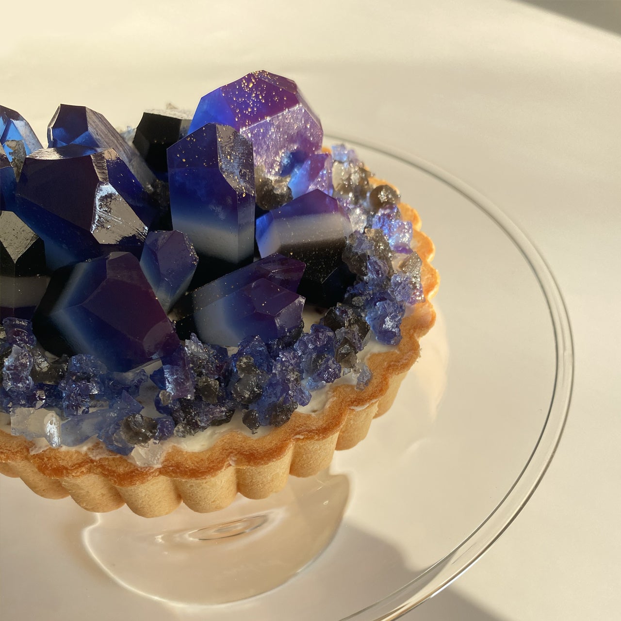 寒天菓子のラピスラズリが、アイスタルトの上で神秘的に輝く