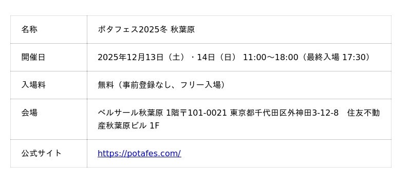 Shokzは、2025年12月13日(土)・14日(日)にベルサール秋葉原(東京都千代田区)で開催されるポータブルオーディオの展示試聴イベント「ポタフェス2025冬 秋葉原」に出展し、オープンイヤー型イヤホンの展示、試聴を実施いたします。Shokzのオープンイヤー型イヤホンは、周りの世界を感じながら1日中快適に、自分だけのBGMを楽しむことができます。入場は無料。アンケートにご回答いただいた方はShokzオリジナルアクセサリーを作成いただけます。