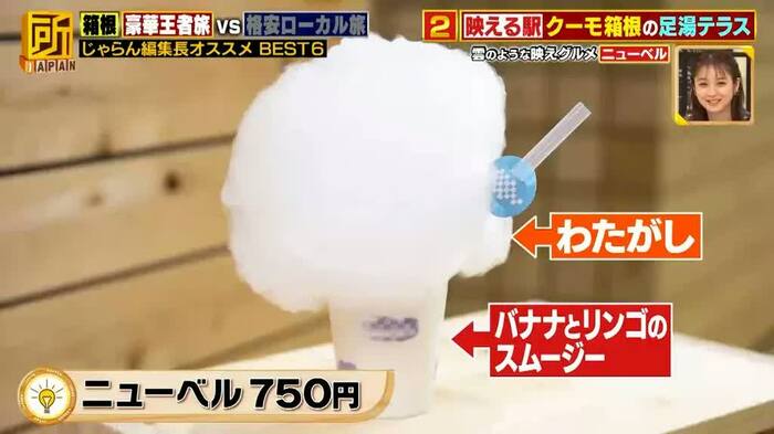番組では、ほかにも、大涌谷名物の真っ黒グルメ、ワンコイン箱根グルメ、オシャレに進化した最新土産などを紹介しました。