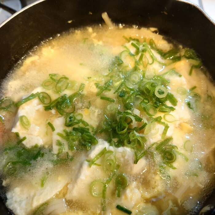 大きめにカットされた豆腐の上には、ネギをふんだんにかけていて、心も体もほっこりしそうです。