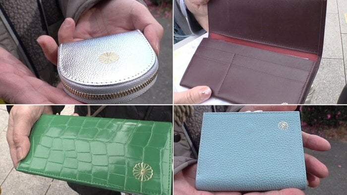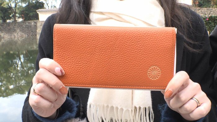 人気の理由は、皇室の紋章として知られる“菊の御紋”が、さりげなくあしらわれた上品なデザインに加え、牛の本革で作られているにもかかわらず、小銭入れは1000円台。長財布は、2000円からという安さ。