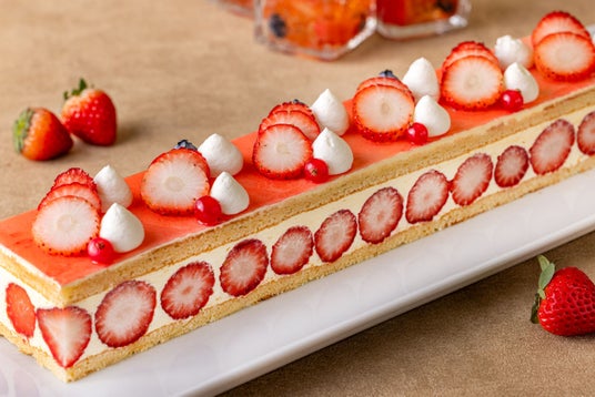 見た目にも華やかで、味わい豊かな苺の季節が今年も到来。新ペストリーシェフ 佐藤 浩一が手掛ける、旬の苺を主役にした多彩なストロベリースイーツを存分にお楽しみいただけます。王道の「苺のショートケーキ」は、北海道産生クリームを入れて焼き上げたこだわりのしっとりしたスポンジと、フレッシュな苺の甘みと酸味が絶妙に重なり合う逸品です。カスタードとバタークリームを合わせたクリームと、アーモンドプードル入りの風味豊かな生地に、苺の酸味が調和したフランス伝統のケーキ「フレジエ」は、苺の美しい断面が特徴。フォトジェニックな淡いピンクが目を引く「苺とピスタチオのムース」は、苺の爽やかな酸味とピスタチオの濃厚な香ばしさが優しく溶け合う一品。スペシャルアシェットデセールには、サクサクした食感のパイ生地と甘酸っぱさが人気の「苺のミルフィーユ」をご用意。繊細な美しい盛り付けも、心を華やかにします。さらにスイーツの合間にお楽しみいただけるライトミールも充実。じっくり煮込んだホテルメイドの「ビーフシチュー」やアツアツの「ドリア」など、多彩なメニューはスパークリングワインやサングリアとともに、上質な夜の時間を演出いたします。